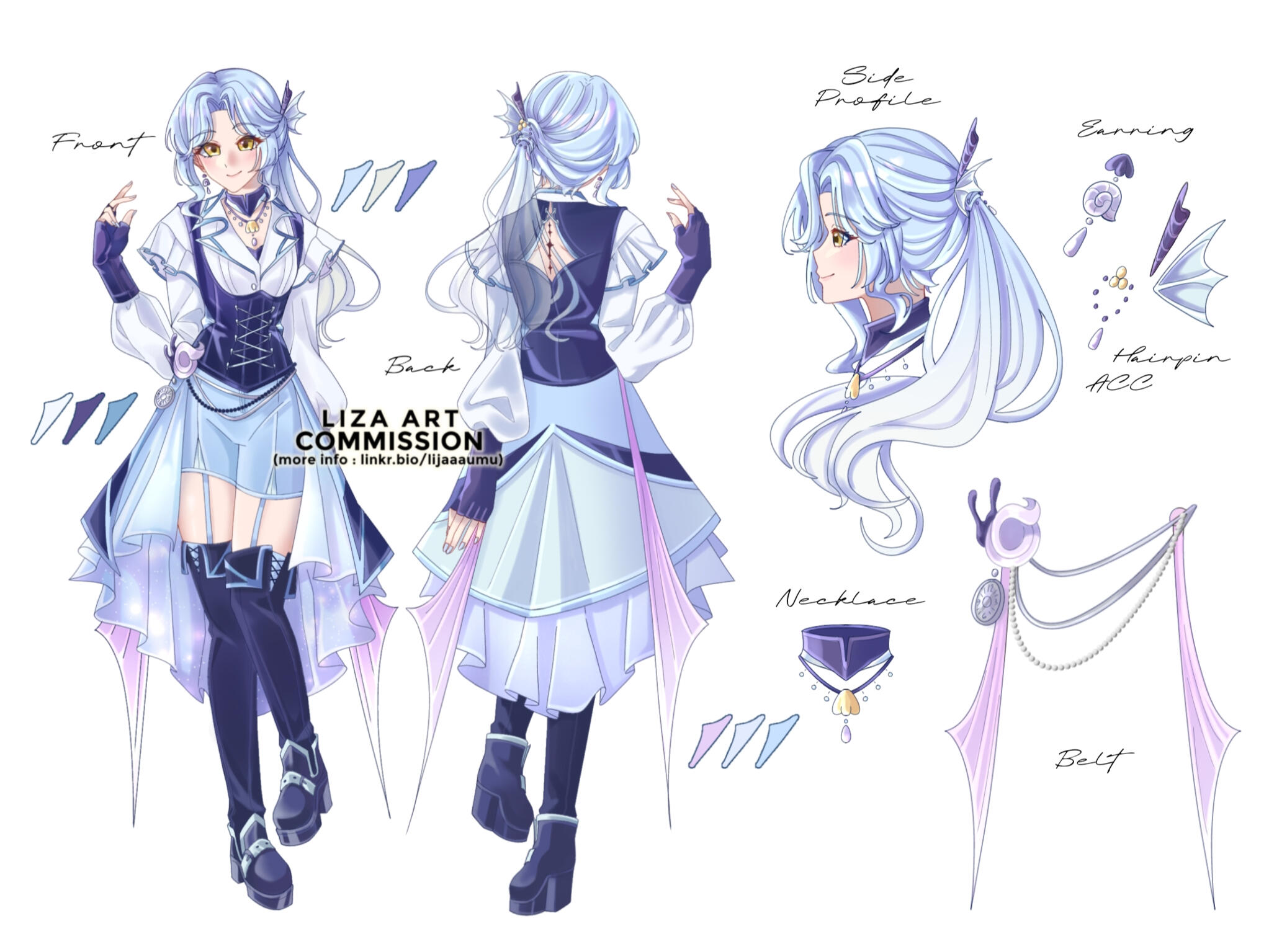 A. FRONT + 3 DETAIL & Bust Up (CCS) 350K B. FRONT + BACK + 5 DETAIL & Bust Up (CCS) 550K (detailed chr/object/outfit +40k-60k, commercial use x2, 50% DP, 50% payment after fix sketch)
